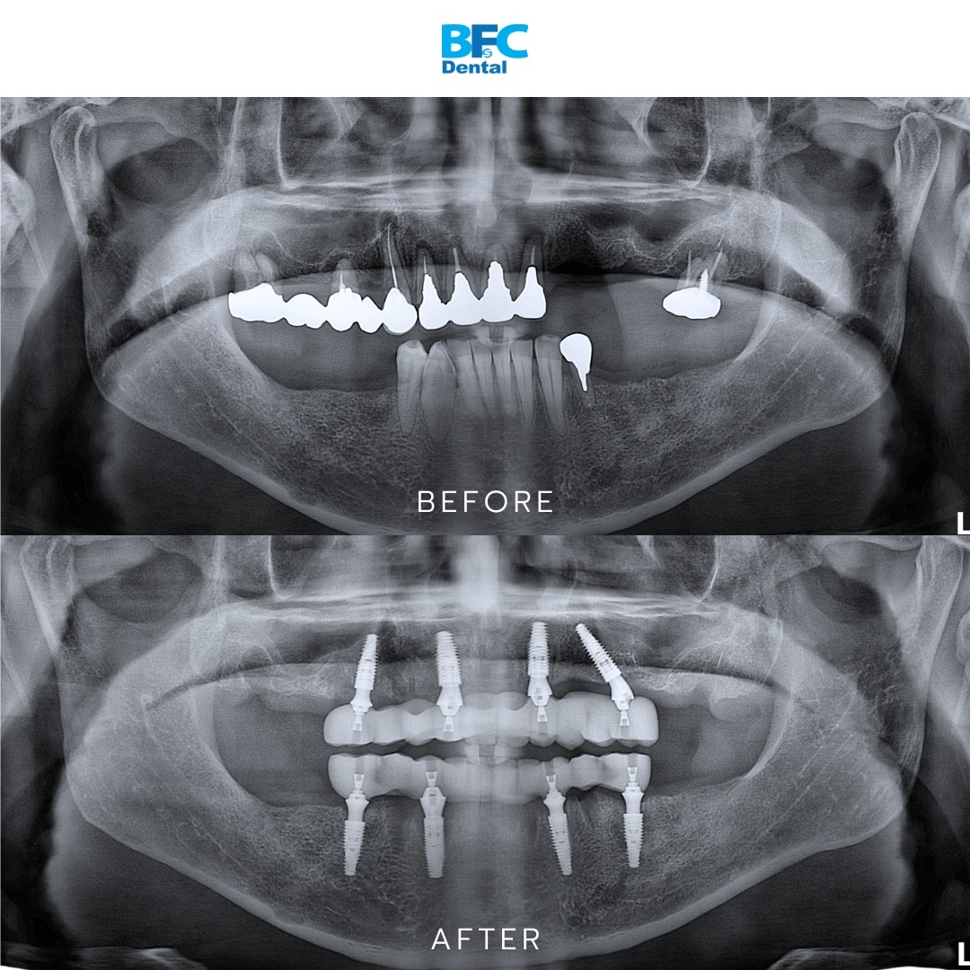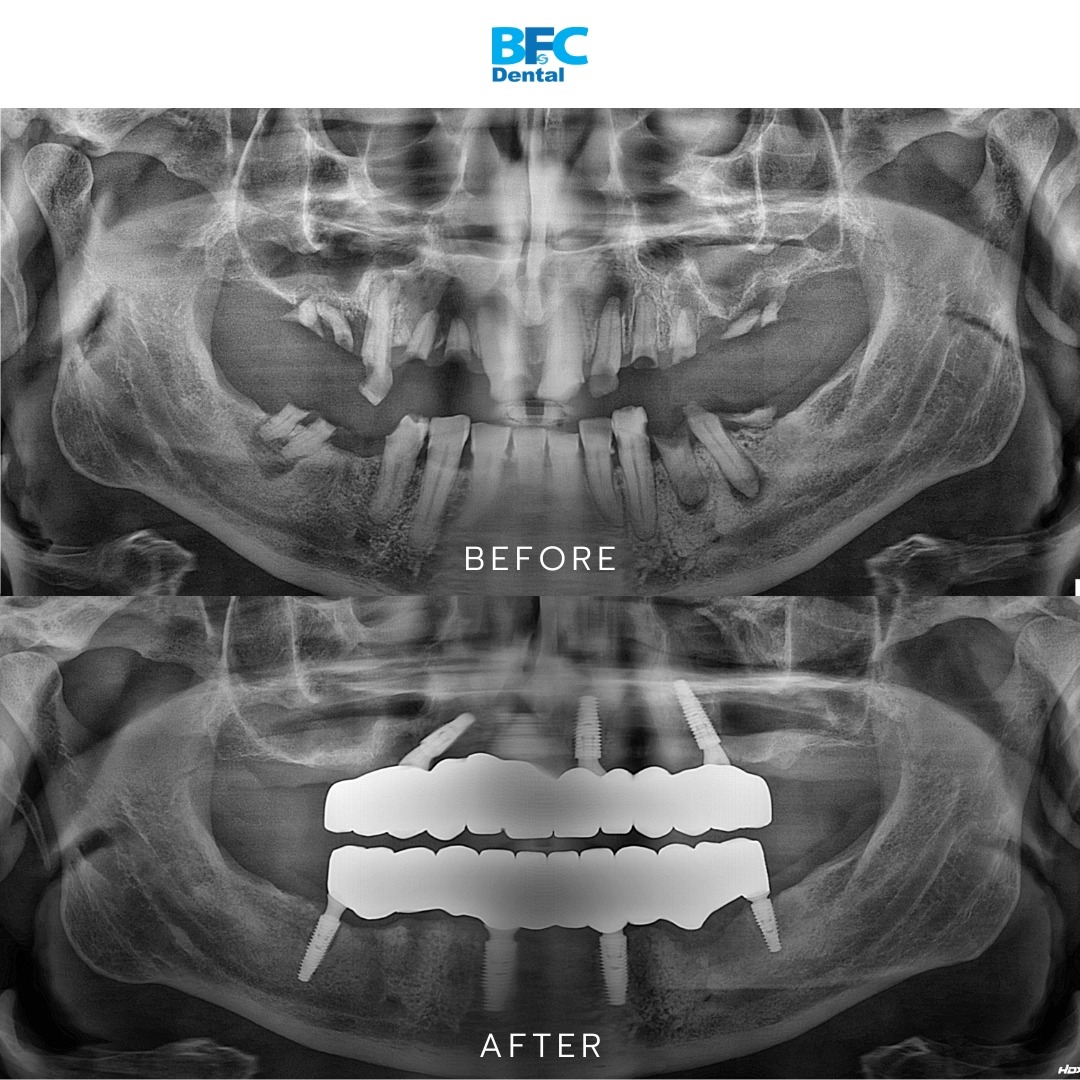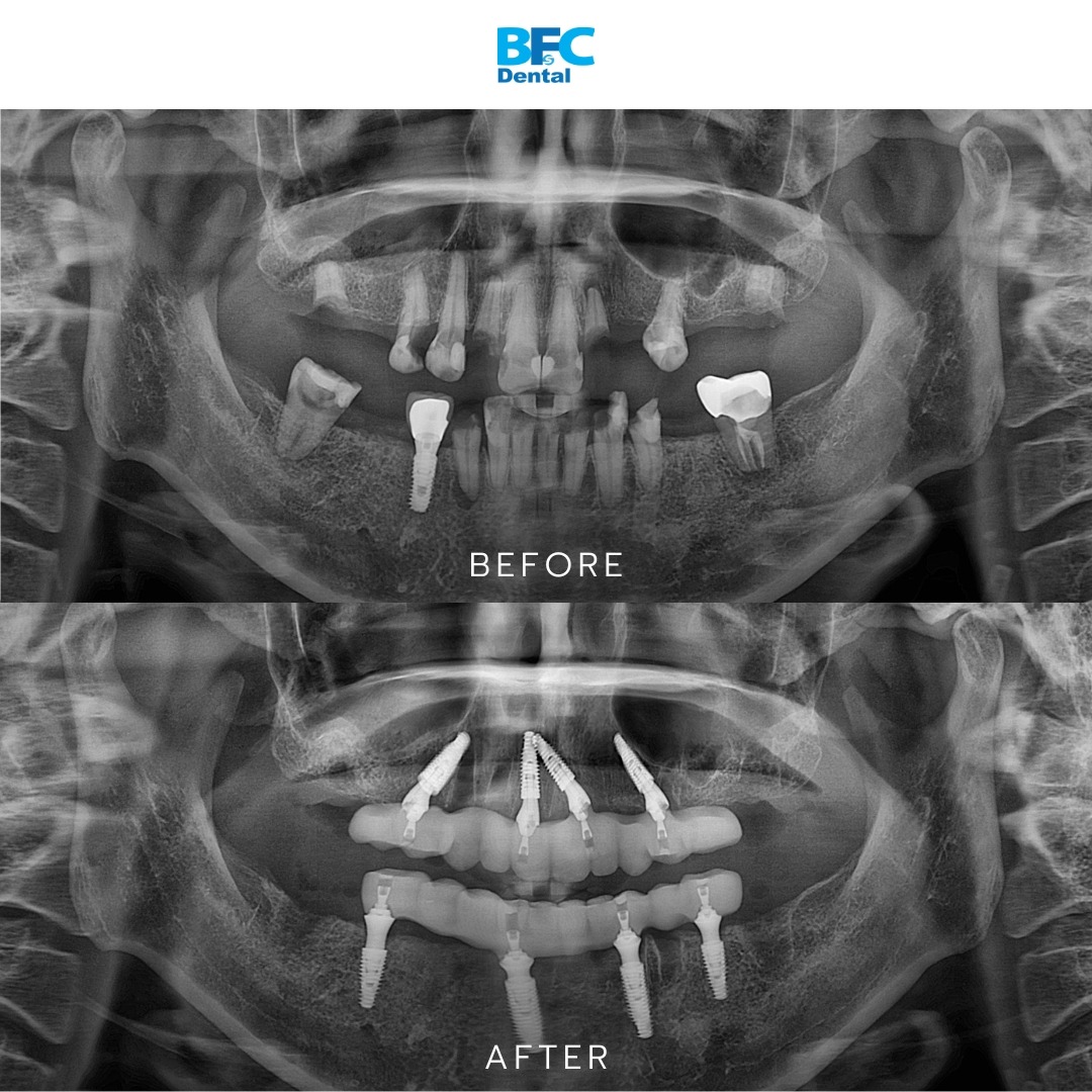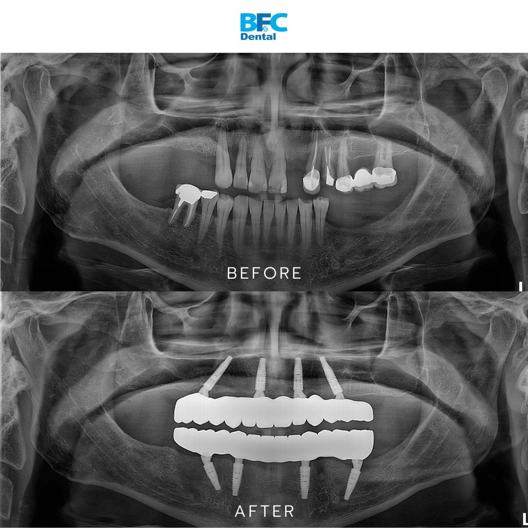 รากเทียมทั้งปาก เหมาะสำหรับผู้ที่สูญเสียฟันแท้หลายซี่หรือทั้งปาก เพื่อคืนฟันและรอยยิ้มให้กลับมาใช้งานพร้อมคืนความมั่นใจได้อย่างเป็นธรรมชาติ รากฟันเทียมทั้งปาก หรือ All on 4 All on 5 และ All on 6 เป็นศัพท์ทางทันตกรรมเพื่อใช้เรียกในเทคนิค ความแตกต่างของตัวเลขนั้นคือจำนวนของรากเทียมต่อขากรรไกรที่คนไข้แต่ละคนจะต้องใช้เพื่อฝังรากเทียมให้ฟันปลอมหรือสะพานฟันยึดแน่นกับเหงือก โดยชื่อจะเปลี่ยนไป ตามจำนวนรากฟันเทียมที่ใช้ เช่น All On 4 มีรากฟันเทียม 4 ตัว All on 5 มี 5 ตัว และ All on 6 มี 6 ตัว