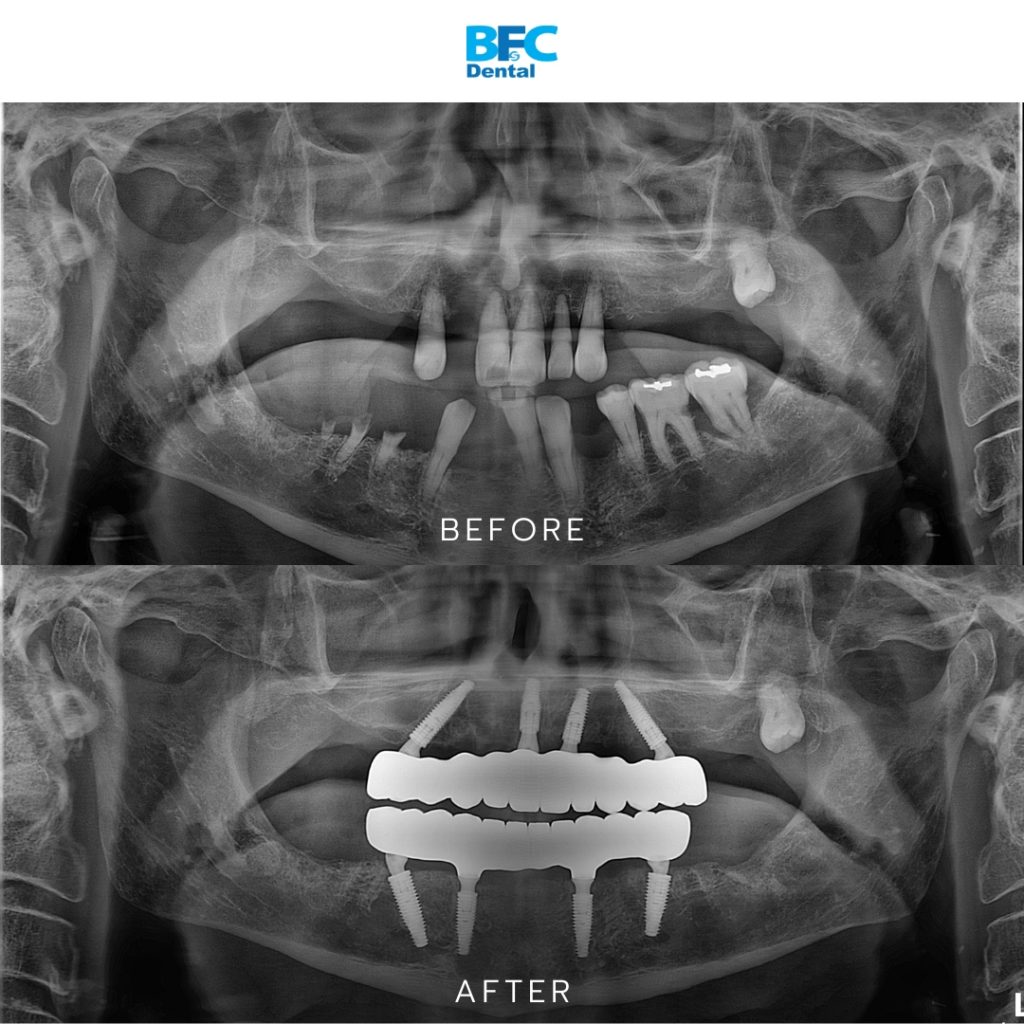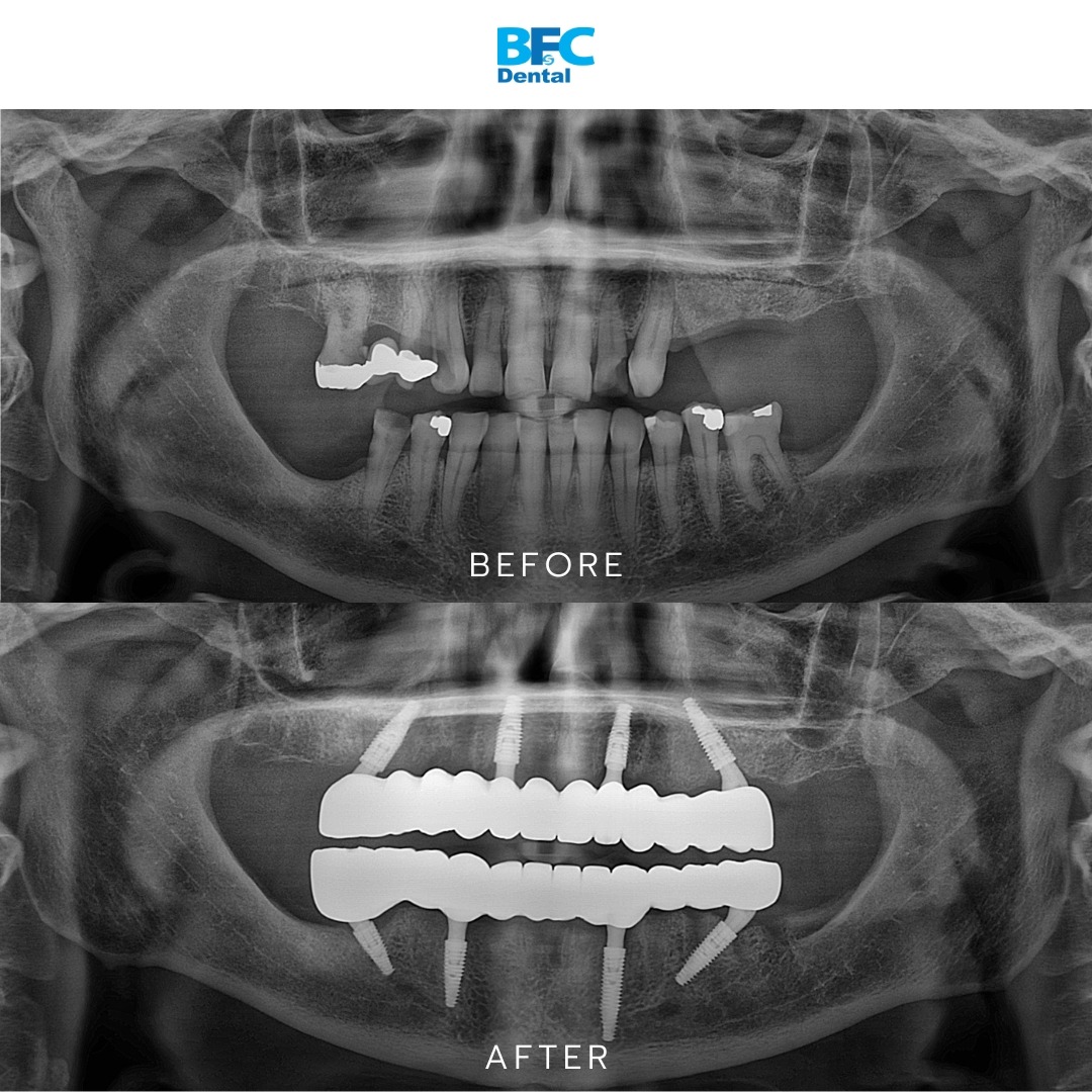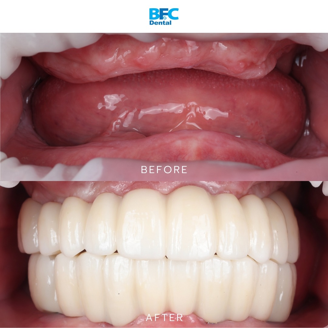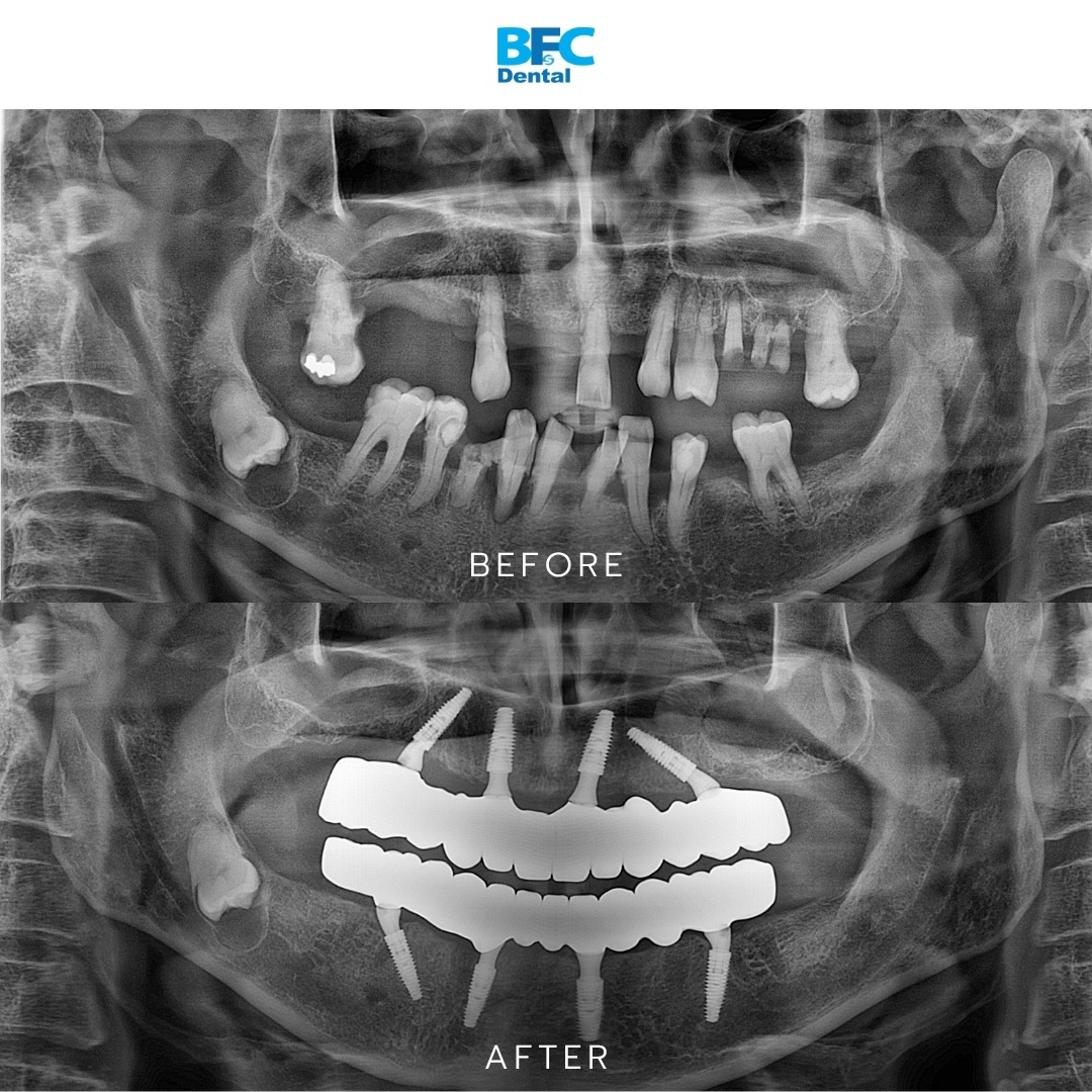 รากเทียมทั้งปาก เหมาะสำหรับผู้ที่สูญเสียฟันแท้หลายซี่หรือทั้งปาก เพื่อคืนฟันและรอยยิ้มให้กลับมาใช้งานพร้อมคืนความมั่นใจได้อย่างเป็นธรรมชาติ รากฟันเทียมทั้งปาก หรือ All on 4 All on 5 และ All on 6 เป็นศัพท์ทางทันตกรรมเพื่อใช้เรียกในเทคนิค ความแตกต่างของตัวเลขนั้นคือจำนวนของรากเทียมต่อขากรรไกรที่คนไข้แต่ละคนจะต้องใช้เพื่อฝังรากเทียมให้ฟันปลอมหรือสะพานฟันยึดแน่นกับเหงือก โดยชื่อจะเปลี่ยนไป ตามจำนวนรากฟันเทียมที่ใช้ เช่น All On 4 มีรากฟันเทียม 4 ตัว All on 5 มี 5 ตัว และ All on 6 มี 6 ตัว