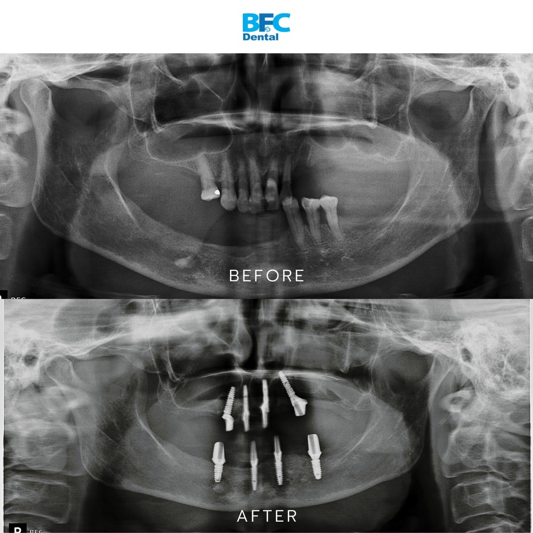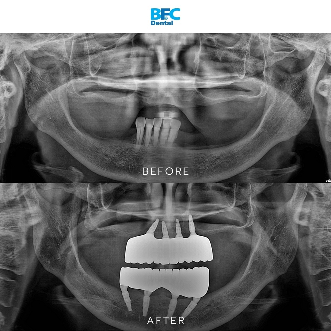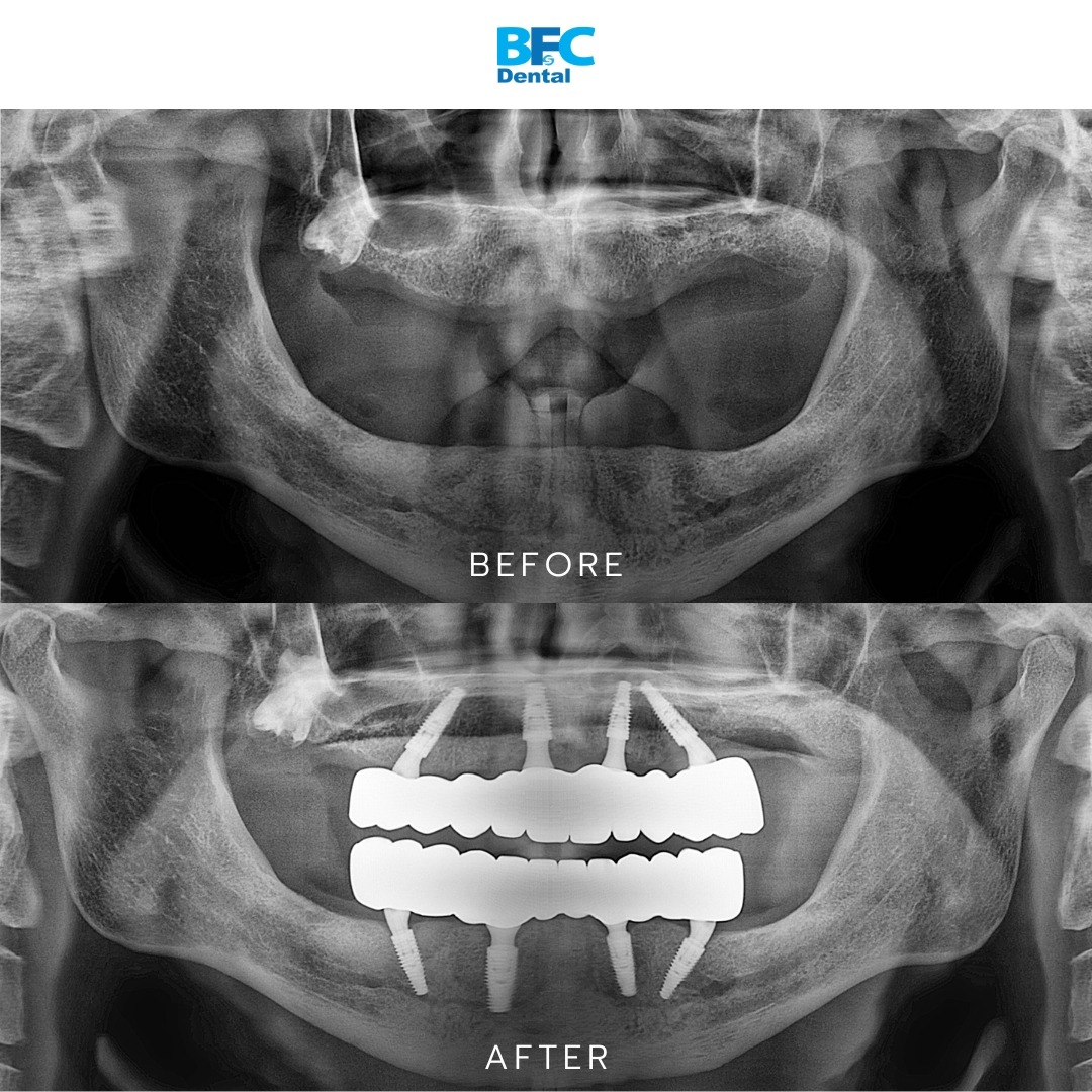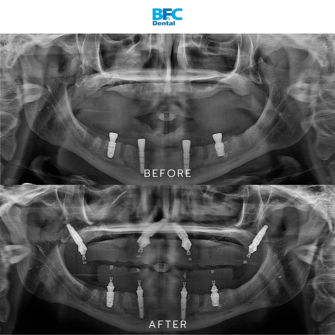 รากเทียมทั้งปาก เหมาะสำหรับผู้ที่สูญเสียฟันแท้หลายซี่หรือทั้งปาก เพื่อคืนฟันและรอยยิ้มให้กลับมาใช้งานพร้อมคืนความมั่นใจได้อย่างเป็นธรรมชาติ รากฟันเทียมทั้งปาก หรือ All on 4 All on 5 และ All on 6 เป็นศัพท์ทางทันตกรรมเพื่อใช้เรียกในเทคนิค ความแตกต่างของตัวเลขนั้นคือจำนวนของรากเทียมต่อขากรรไกรที่คนไข้แต่ละคนจะต้องใช้เพื่อฝังรากเทียมให้ฟันปลอมหรือสะพานฟันยึดแน่นกับเหงือก โดยชื่อจะเปลี่ยนไป ตามจำนวนรากฟันเทียมที่ใช้ เช่น All On 4 มีรากฟันเทียม 4 ตัว All on 5 มี 5 ตัว และ All on 6 มี 6 ตัว